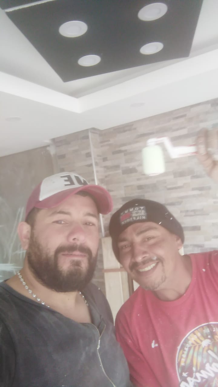 Elvis junto a Julián, su jefe, en una de las obras en las que trabajan. Foto archivo personal.