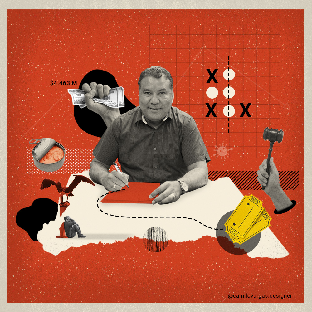 Con la primera, el gobernador Castillo firmó el 6 de abril un contrato de más de 4.463 millones de pesos para el “suministro, logística y entrega de kits de ayuda alimentaria” para la población afectada por la emergencia en Arauca. Con la segunda, el contrato -firmado el 14 de abril- fue de 570 millones de pesos para “el apoyo a la difusión de la cultura, mediante la realización de eventos y actividades artísticas” en el municipio de Cravo Norte.