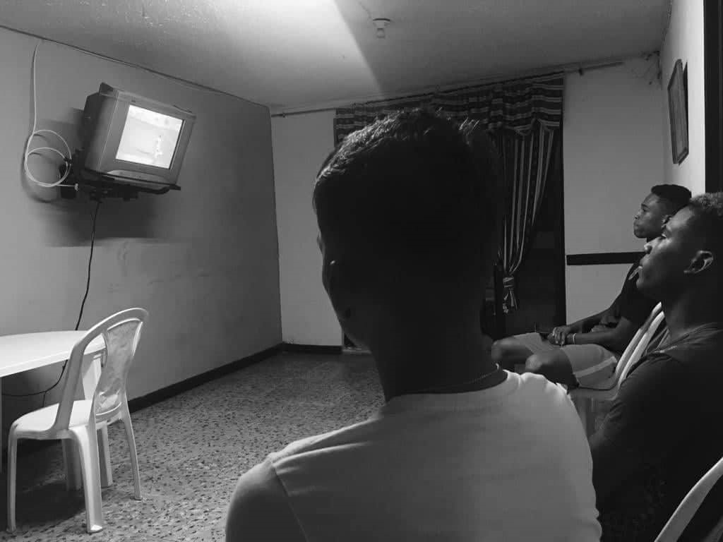 Son casi las seis de la tarde, en medio de la algarabía del repaso de las reglas de la casa y el sonido de un pequeño televisor que transmite un partido entre Alianza Petrolera y Bucaramanga, que, por cierto, es muy atendido por los dos nuevos compañeros de Arturo, nos dirigimos a una cancha de fútbol cercana para terminar con las últimas entrevistas.