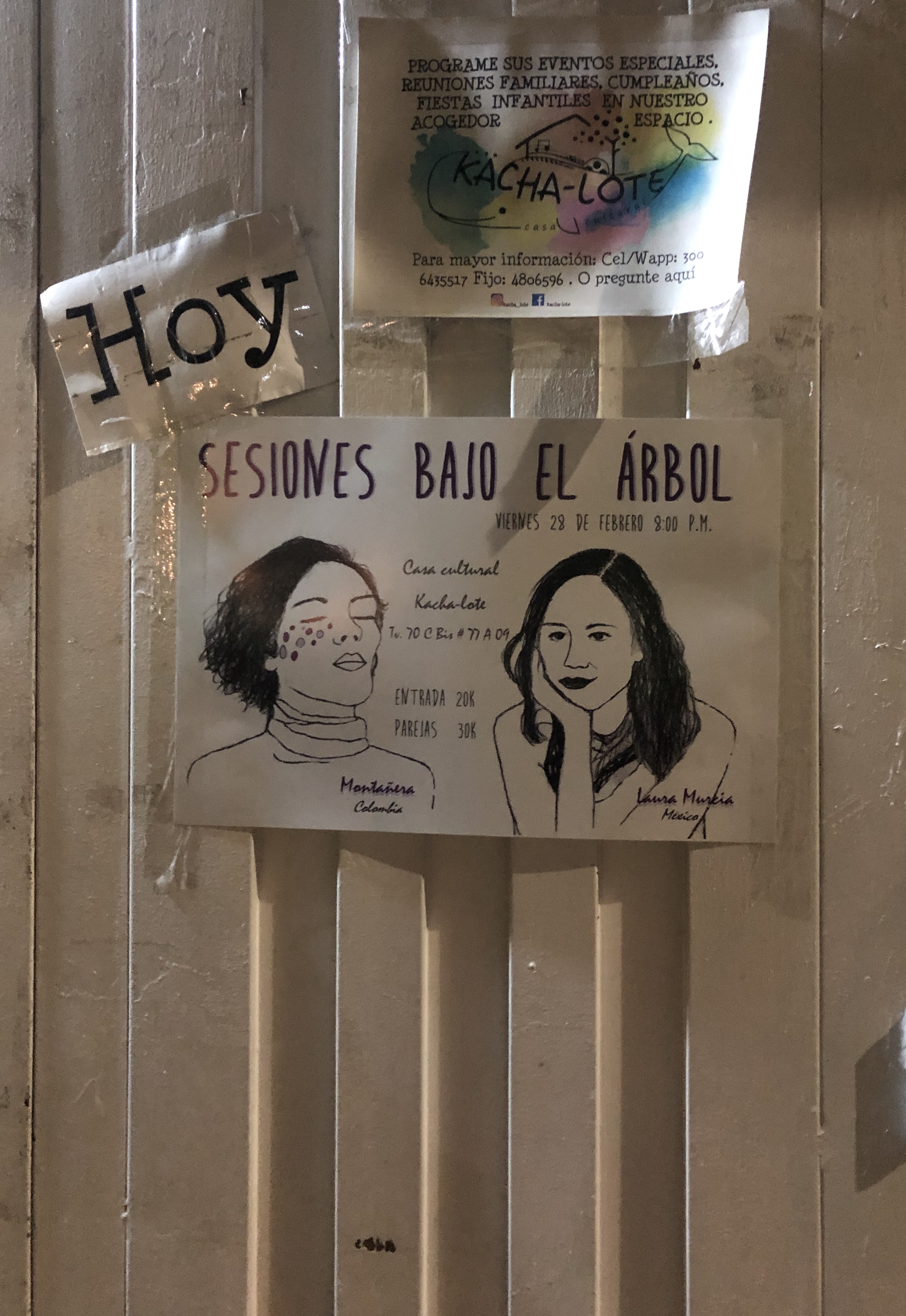 El día se disponía a culminar y la noche se asomaba en la ciudad de Bogotá. Había acumulación de transeúntes en las calles y en el transporte público, muy habitual a esa hora. Es viernes 28 de febrero. Mientras muchas personas salían de trabajar o estudiar para dirigirse a la casa, o a alguna parte para realizar actividades de ocio, en otro espacio se disponían a abrirle la puerta al público para que disfrutara de un concierto de música independiente. Sesiones Bajo el Árbol presentaba a dos cantautoras, Montañera (Colombia) y Laura Murcia (México).