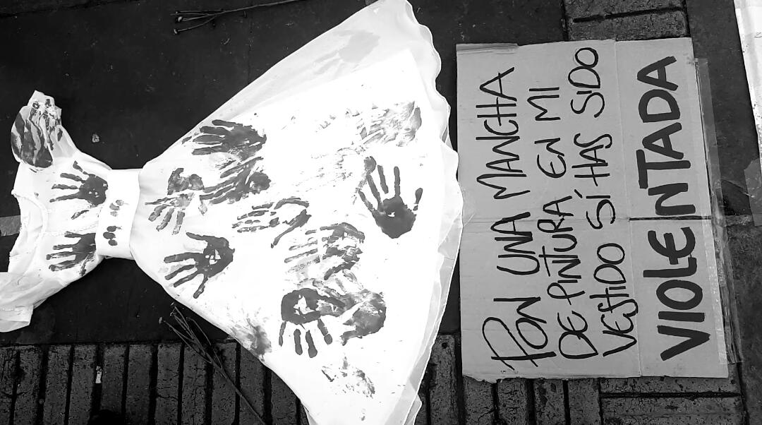 En espacios de diálogo y visibilización como ese, Valentina incentiva la expresión de sentimientos de mujeres que se sintieron incómodas o vulneradas en alguna situación a lo largo de su vida. Esto a través de actos artísticos como, por ejemplo, plasmar una palma de la mano pintada de rojo —simbolizando una agresión— sobre un vestido blanco —simulando pureza e inocencia—.