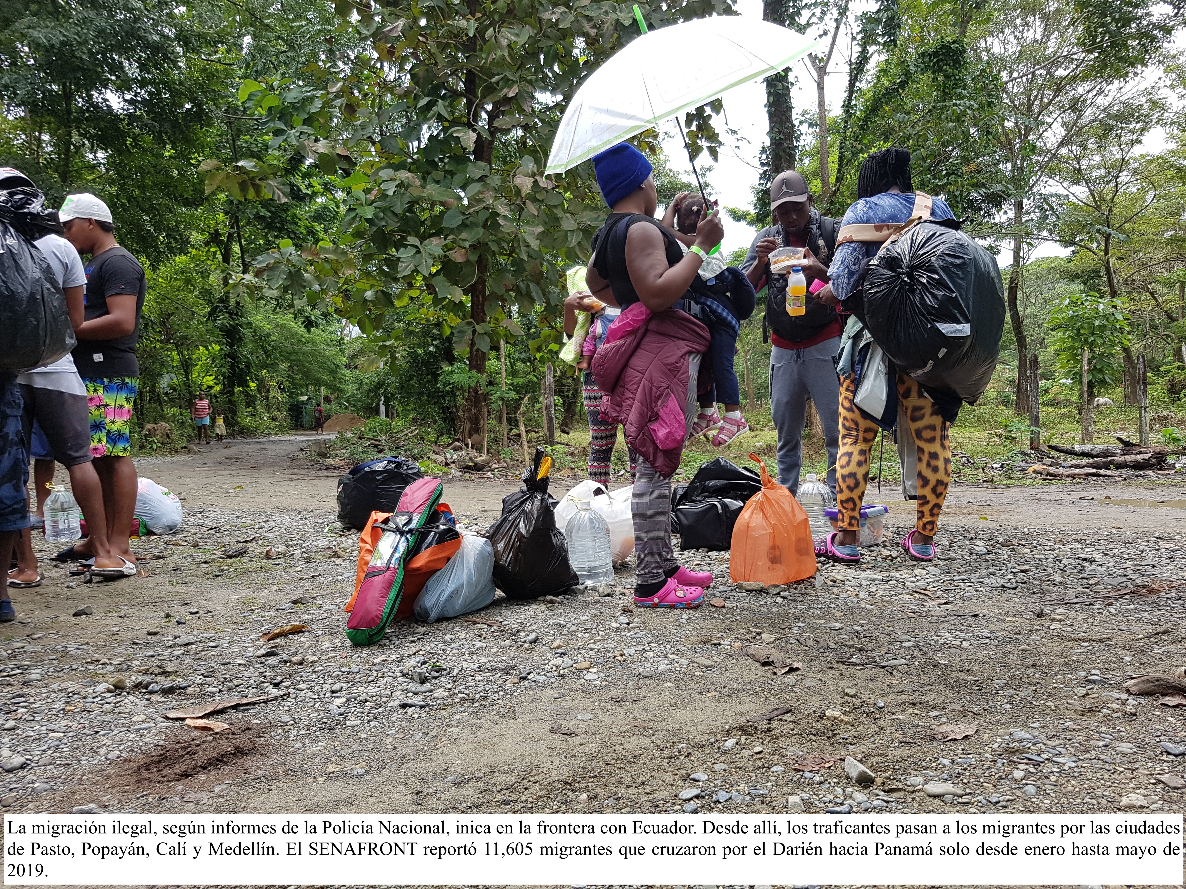 Por el otro, las trochas ignotas en las veredas El Cielo y Astí, que conducen, tras 6 u 8 días de caminata, a los corregimientos de Metetí y Yaviza, Provincia del Darién, Panamá, son de paso obligatorio para los miles de migrantes arubeños, afganos, bangladesíes, burkineses, caboverdianos, cameruneses, congoleños, croatas, cubanos, esrilanqueses, eritreos, egipcios, ecuatorianos, ghaneses, guineos, haitianos, indios, kazajos, sirios, saudíes, senegaleses, sierraleoneses, somalíes, sudafricanos, malienses, nepalíes, paquistanos y venezolanos en su fuga hacia Estados Unidos o Canadá.
