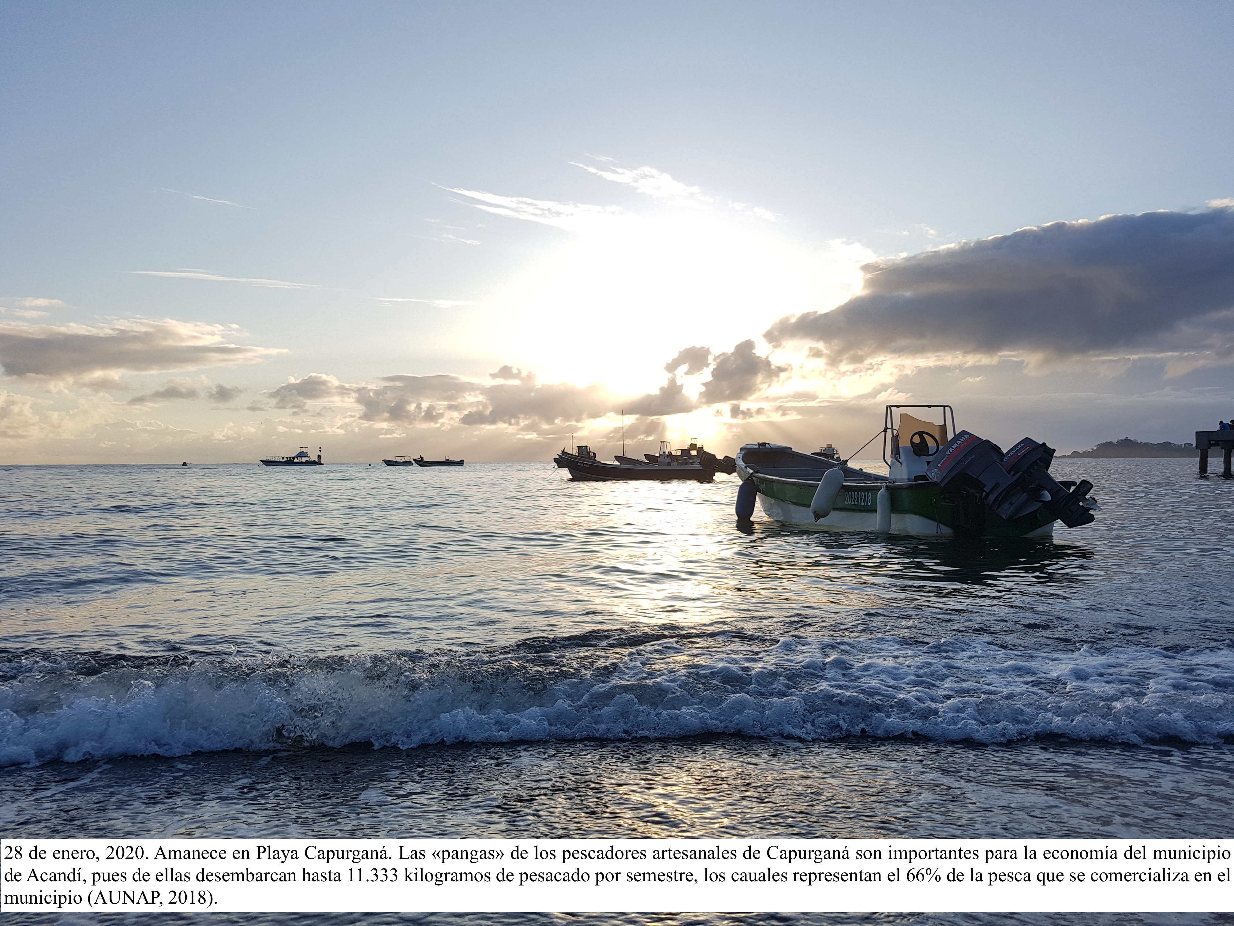 Ante su veto, Juan e Issac se dirigen temprano al muelle de Capurganá. Allí, mar adentro, donde en el horizonte el alba se enreda entre las nubes, se divisa al barco pesquero Don Danielo y en la bahía serpenteante se ven las «pangas» La Peluza, El Icy, Yuranis, Niño Keyler y La Coquerita, las cuales los pescadores artesanales alistan para otro día de faena en algún punto onírico del archipélago de San Blas.