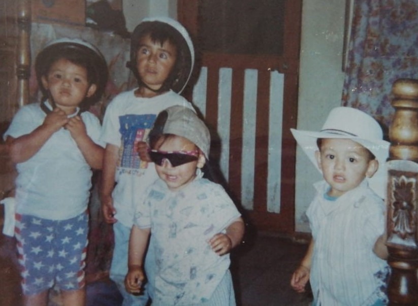 De izquierda a derecha: Mónica Gil, Sebastián Molano, Julián Molano y Carlos Andrés Gil. Desde pequeños, esta familia disfruta jugar con indumentaria de ciclismo. Foto: Archivo personal Gloria Benavides.