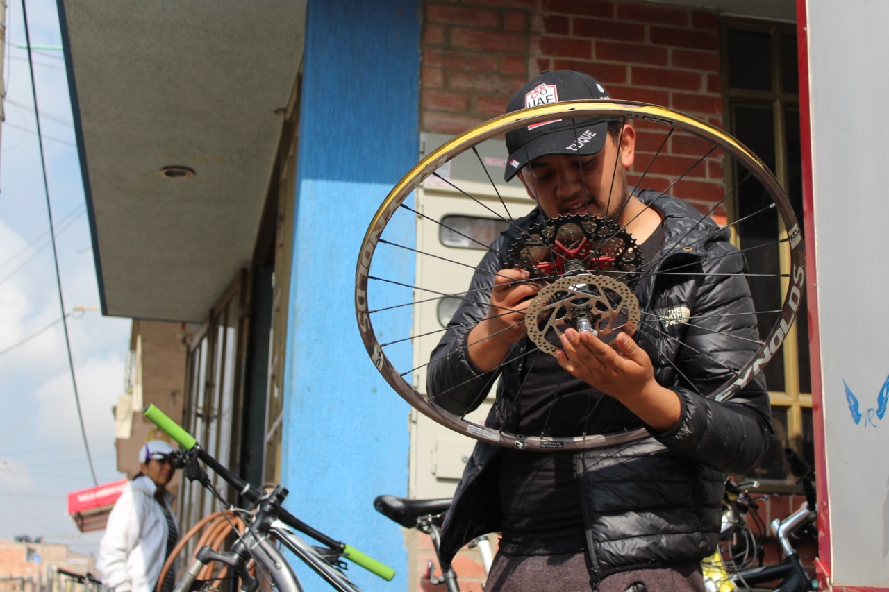 La habilidad que tiene Andrés para la reparación de bicicletas lo ayudó a sortear cualquier dificultad que se presentara en sus entrenamientos. Foto: Angie Garay.