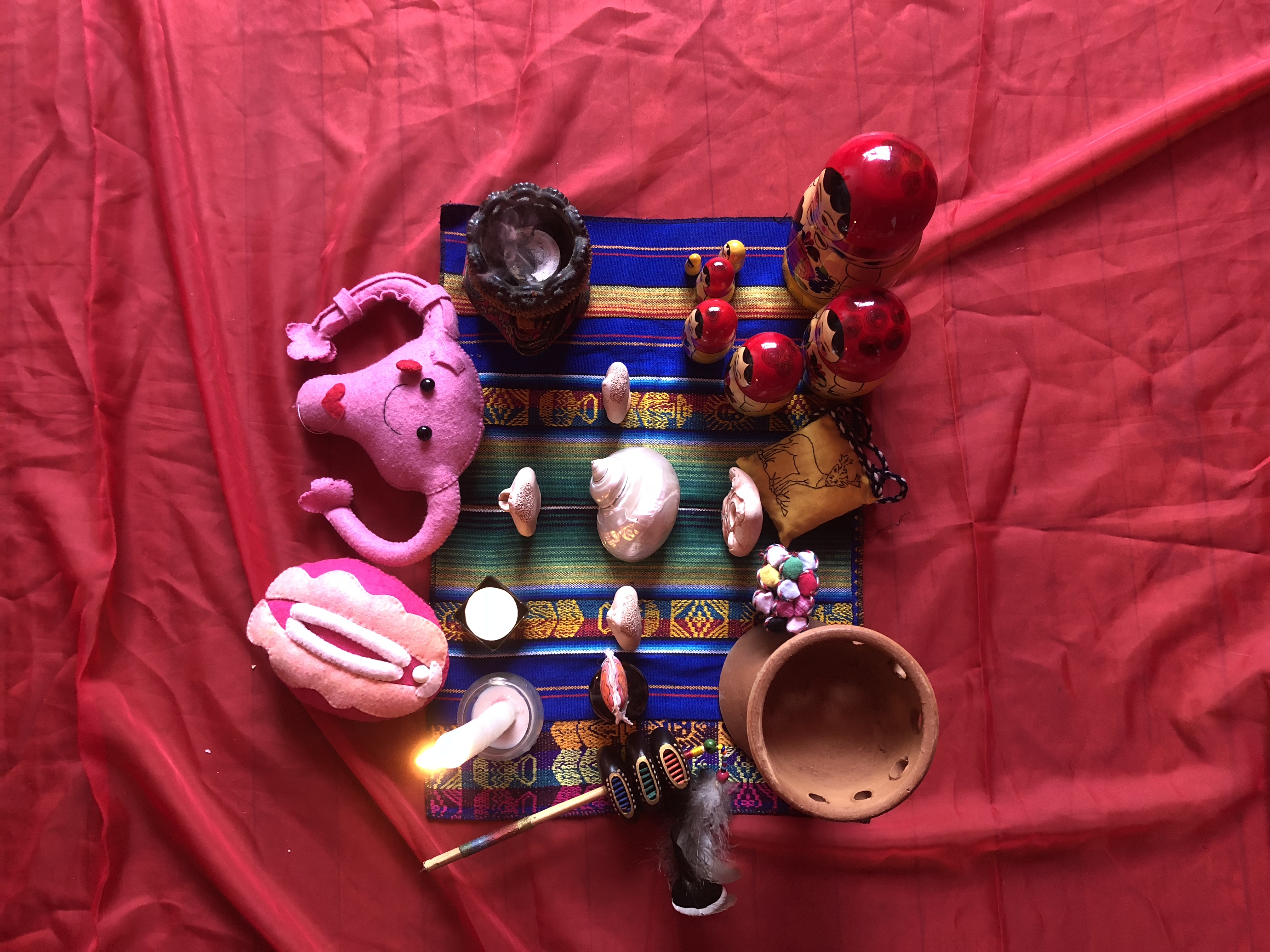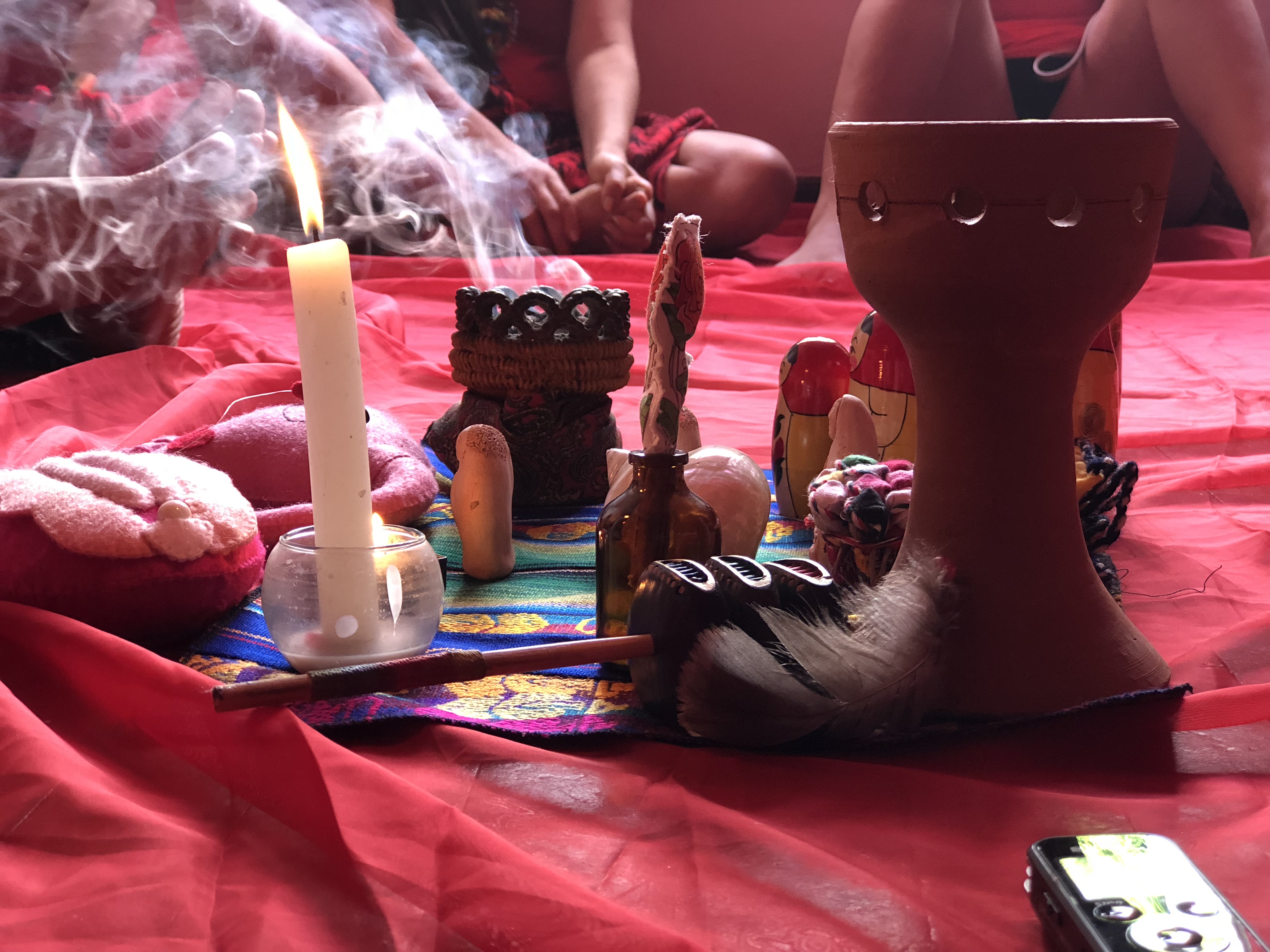El gran altar en donde las mujeres hacen un círculo para honrar a sus ancestros, su ciclo, su útero y su naturaleza femenina. (Foto: Laura Rey)