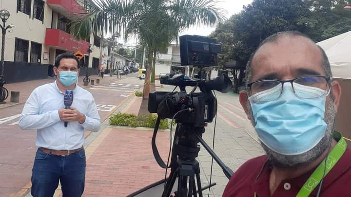 Equipo de Noticias RCN en Bucaramanga, compuesto por el periodista Cristian Diaz y el camarógrafo Wilfredo Pinto. Foto: Archivo personal Cristian Diaz.