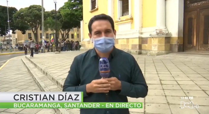 Sobre las 12:30 del mediodía el periodista corresponsal de RCN televisión, en Bucaramanga, se encontraba a casi cien metros de la plaza cívica Luis Carlos Galán Sarmiento, específicamente en un separador sobre la calle 36, en el centro de la capital de Santander. El encuadre seleccionado por Wilfredo Pinto, su camarógrafo, fue al lado del busto del poeta bumangués Aurelio Martínez Mutis, el cual permitía tener una panorámica del punto de concentración, sin interferir en las dinámicas propias de la manifestación.
