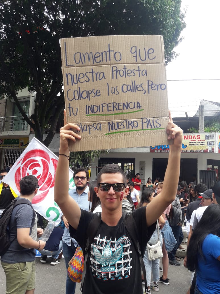 Cristian Camilo Trujillo tiene 22 años y estudia Comunicación Social y Periodismo. Hace tres meses empezó a trabajar como reportero en La Otra Verdad. Foto archivo personal.A las seis de la tarde, el coro comenzó a regarse en masa por las calles de Ibagué, huyendo del gas lacrimógeno que venía de los agentes del Esmad. Fenix, el CAI, que fue bautizado así en 2013 luego de haber sido reconstruido después de un tropel con otros manifestantes, tenía para ese momento los vidrios rotos, según el informe del diario Alerta Tolima, pero no corrió la misma suerte de sus colegas incendiados en Bogotá. Por desgracia, los vidrios del CAI no fueron los únicos golpeados esa noche.