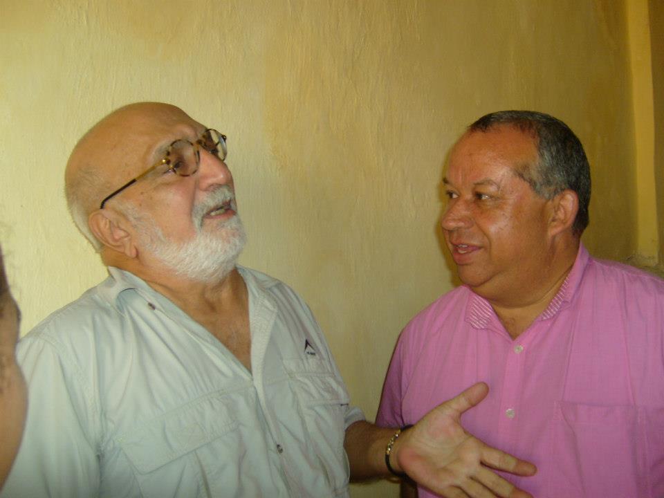Darío Sabogal junto al periodista Juan Gossain en el taller de periodismo radial en Cartagena.