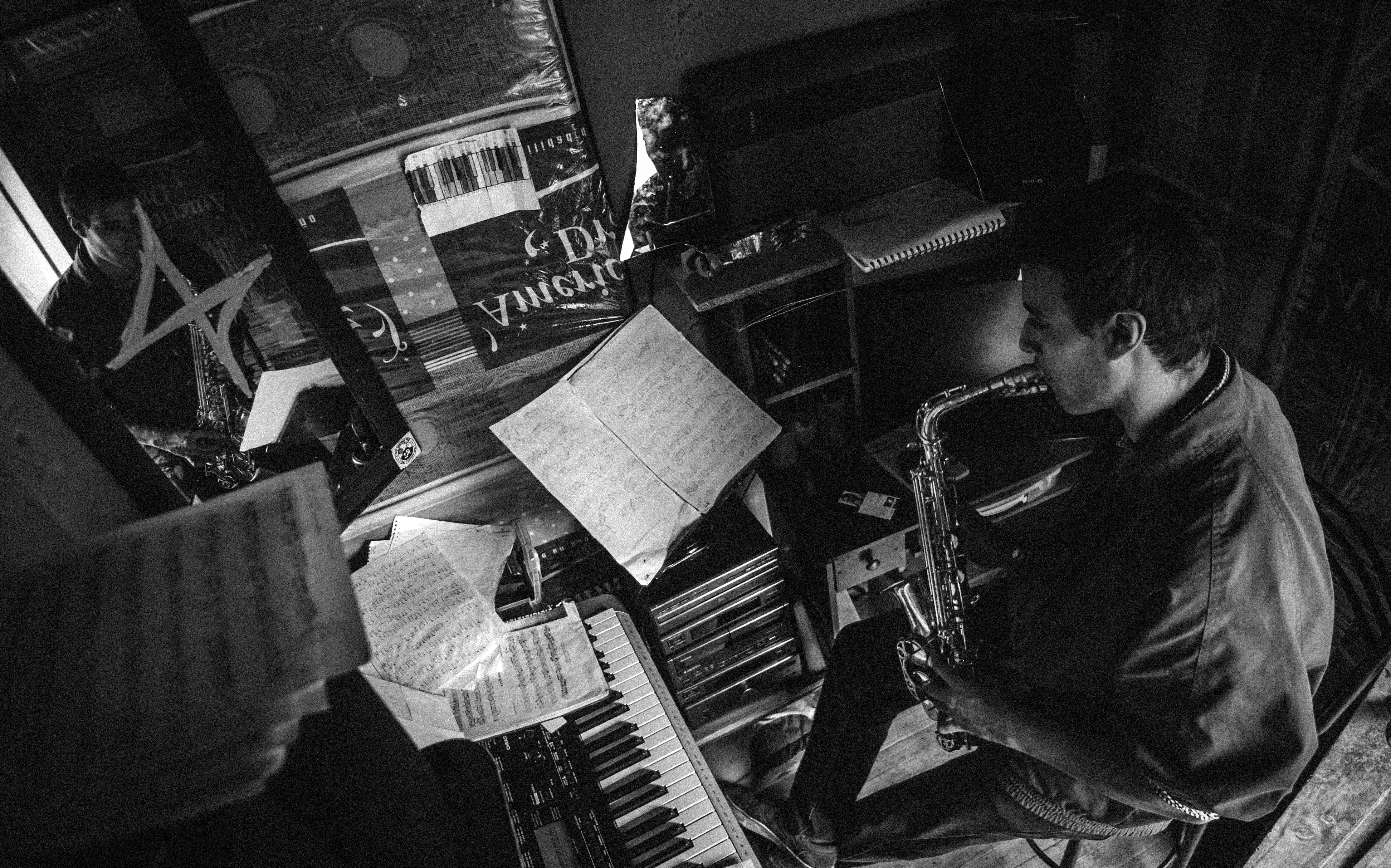 El saxofonista César Infante ensayando las obras de la banda sinfónica de Cundinamarca. (Foto: José David Cruz)
