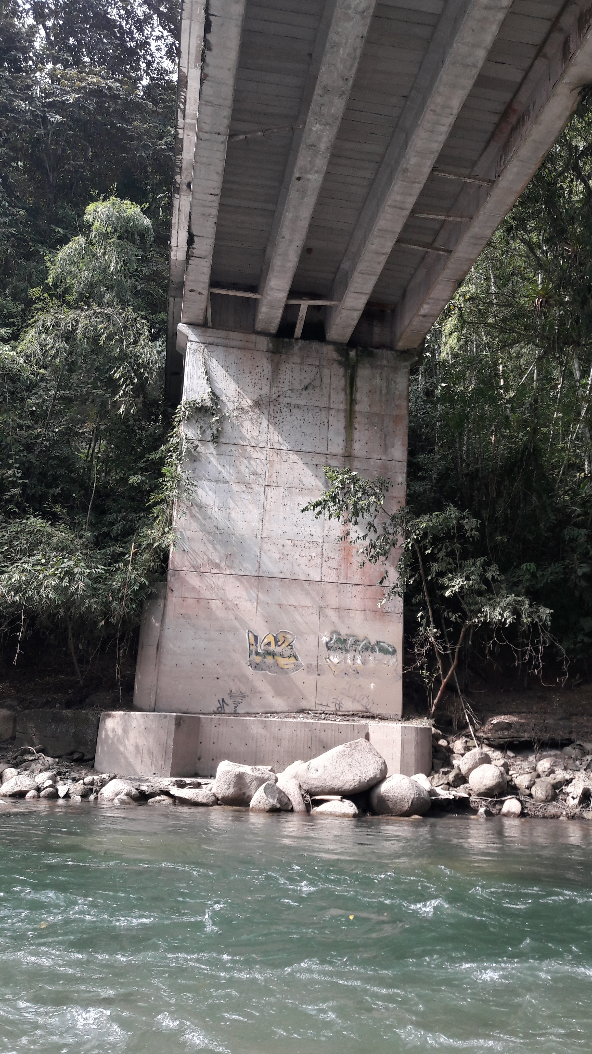 Parte inferior del puente sobre el río La Miel en la vía Victoria – Samaná. El proyecto “Ríos de Vida y Muerte” señala que, en este río, que cruza el oriente de Caldas, se han encontrado más de 36 cuerpos de desaparecidos. Habitantes de la zona señalan que en este punto exacto eran lanzados cuerpos por parte de paramilitares. (Foto: Jairo Andrés Vargas)