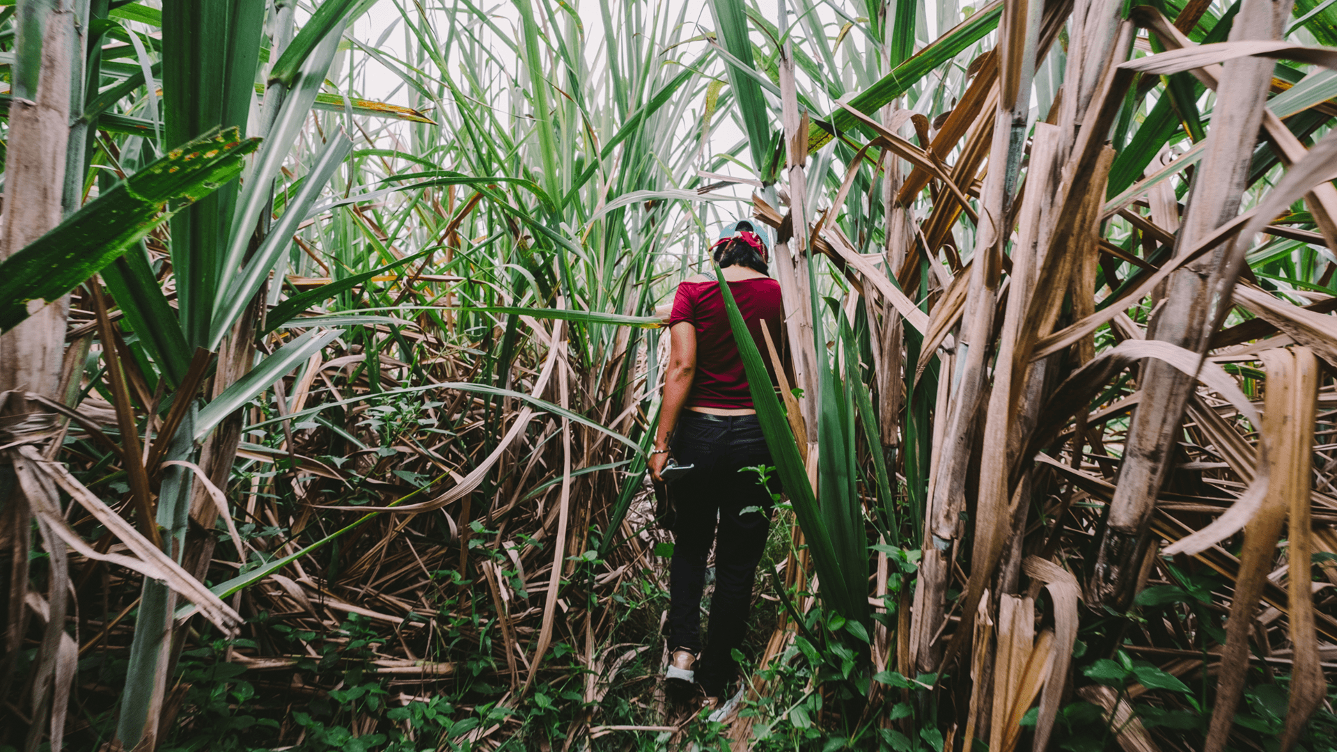Portada: "Línea R", una de las mujeres integrantes de la primera línea, en el recorrido por los cañaduzales. | Crédito: Juan Arias/Mutante.