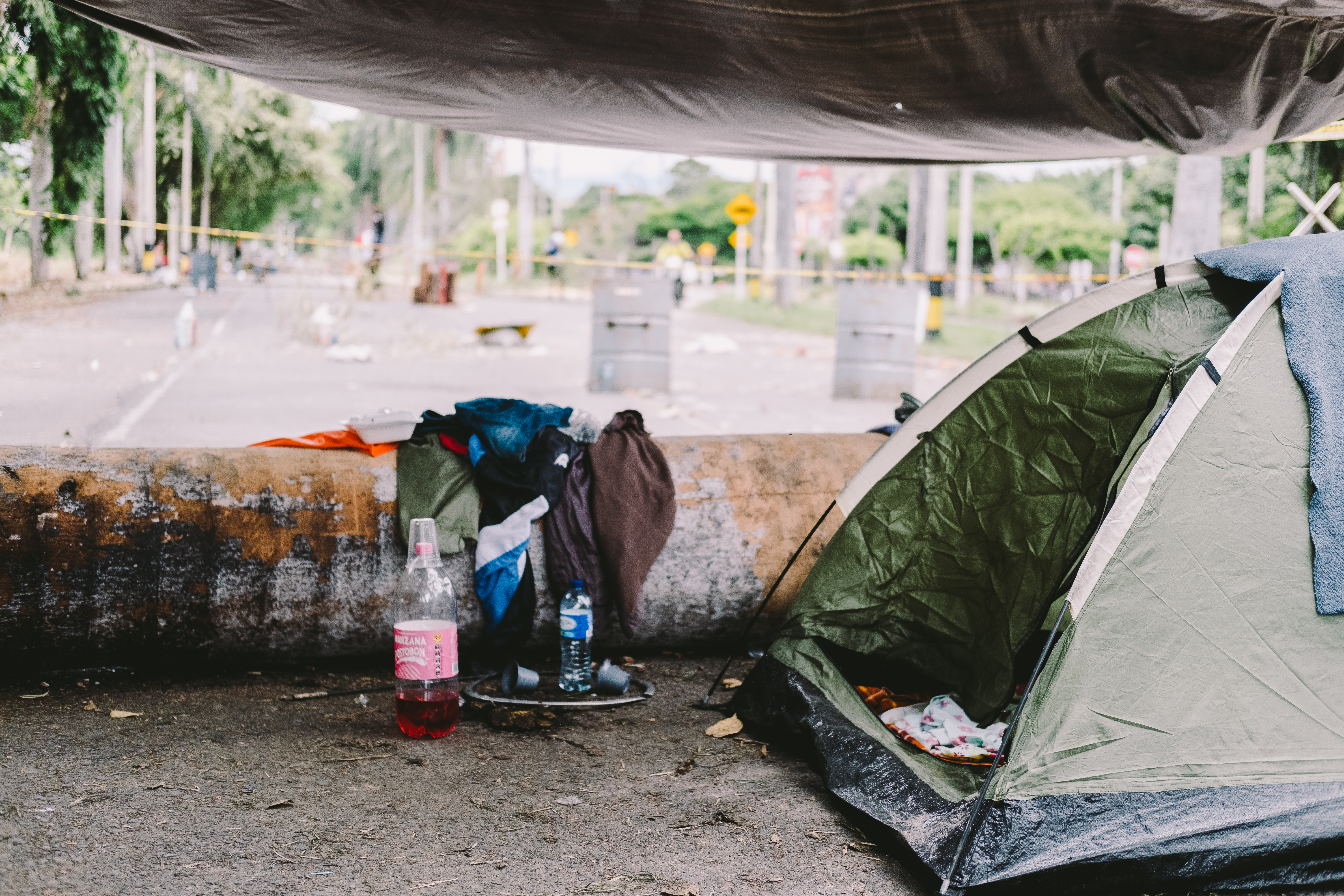 Campamento en bloqueo del sector conocido como "La Y". Crédito: Juan Arias/Mutante.