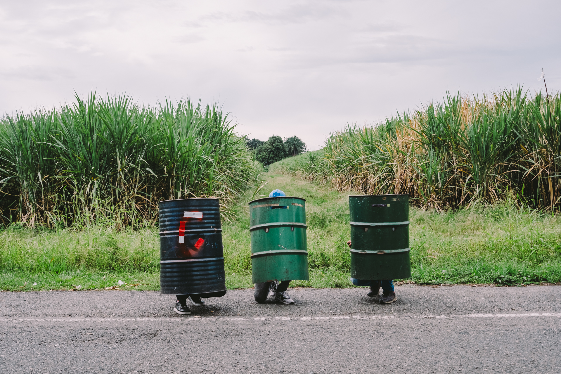 “Los compañeros con tanto gas se estaban ahogando”, contó Santiago. La altura de los cultivos casi dobla la de una persona. Hay mosquitos, mucho pantano, las hojas de la caña afiladas. Por ahí corrieron decenas de manifestantes en completa oscuridad. Una semana después de los hechos seguían allí algunos objetos: la espuma de un brasier, bolsas de leche, una llanta quemada, la placa de una moto.