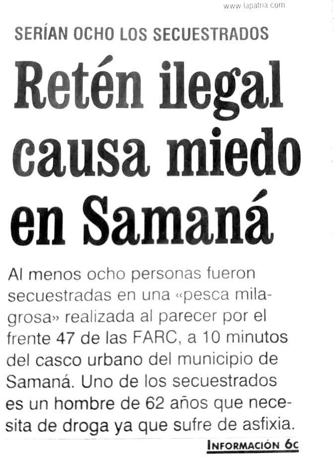 “En el territorio, por organización militar, la Cuarta Brigada llegaba hasta Nariño Antioquia, en límites entre Samaná y ese departamento, algo de la jurisdicción de Florencia y el área del Oriente de Caldas le correspondía a la Sexta Brigada con sede en Honda, entonces cuando la Cuarta Brigada apretaba hacia el lado de allá, estos grupos corrían hacia el lado de Samaná, y viceversa”, comenta Fabio Arias, alcalde de Samaná entre 1999 y 2001.