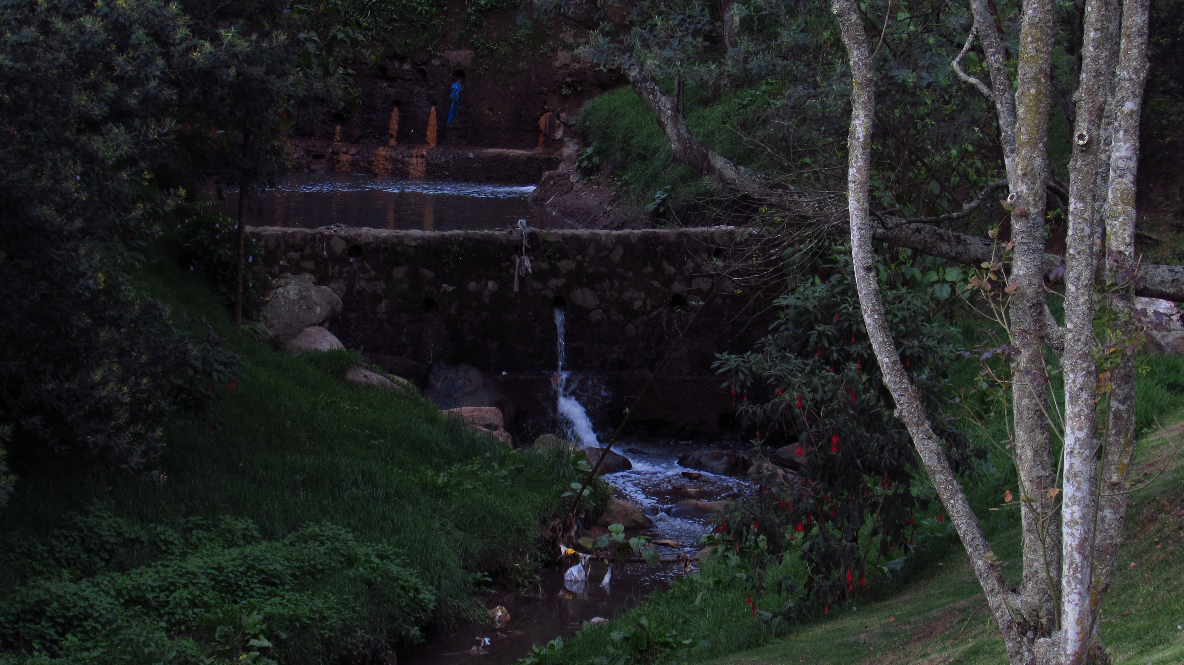 El arroyo ubicado dentro del Parque Nacional Enrique Olaya Herrera, ambientaba el lugar con el golpe que emitía el choque del agua al caer, contra las ramas, rocas y basura.