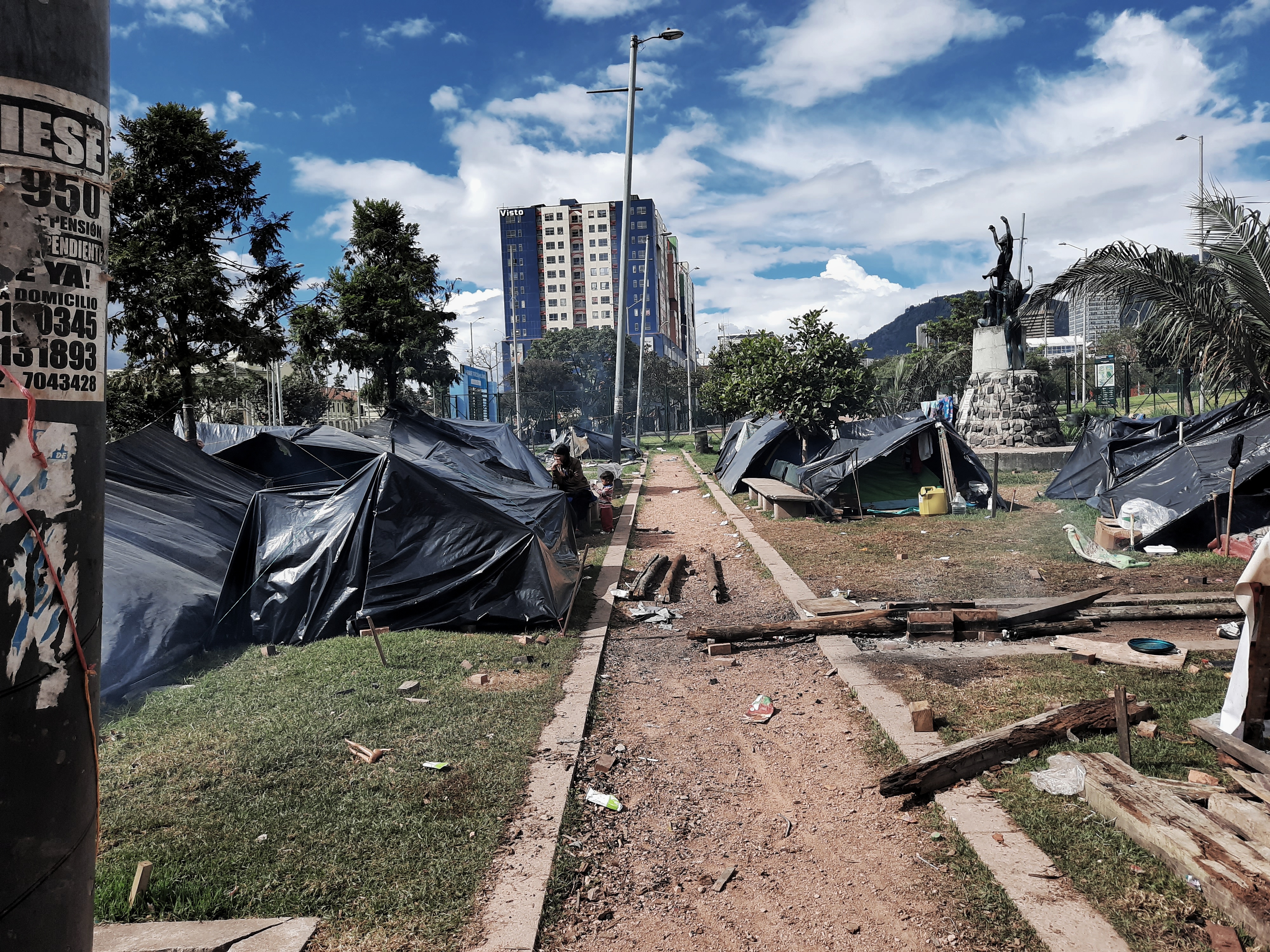 En Bogotá, más de 100 familias que sobreviven en la intemperie, están ahí porque no tienen la capacidad de costear una vivienda digna ni la alimentación de sus familias. Viven entre cambuches improvisados, a punta de ollas comunitarias y de los alimentos que los bogotanos solidarios les hacen llegar.