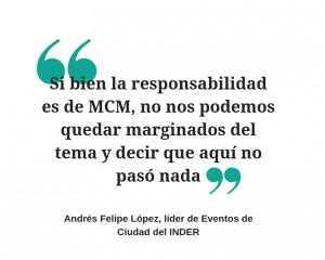 “No estamos ajenos a la situación. Nos dolió porque ese tipo de cosas no deberían pasar. Si fuera organizado por nosotros, ¡ah problema en el que nos hubiéramos metido! porque es la Alcaldía, porque es una entidad pública. Pero estamos hablando de la vida de una persona. Si bien la responsabilidad es de MCM, no nos podemos quedar marginados del tema y decir que aquí no pasó nada. Con eso vamos a tomar los correctivos para los próximos eventos”, agregó López.