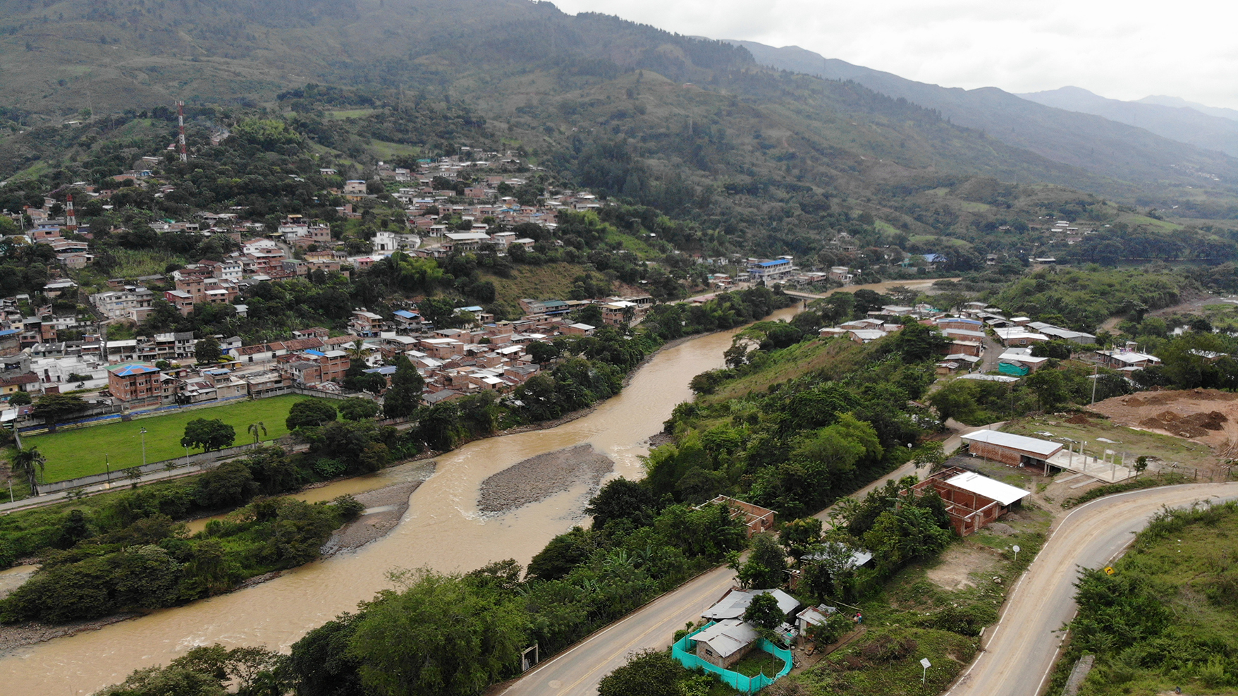 Vista aérea del municipio de Suárez, en el Norte del Cauca, registrada en junio de 2019. Suárez es uno de los municipios más afectados por la extracción ilegal de oro. Crédito: La Liga Contra el Silencio.