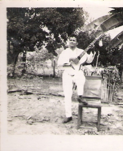 Marco Tulio Lozano junto a su guitarra, un año luego de combatir en la guerra de Corea. (Foto: Archivo Celina Navarro)