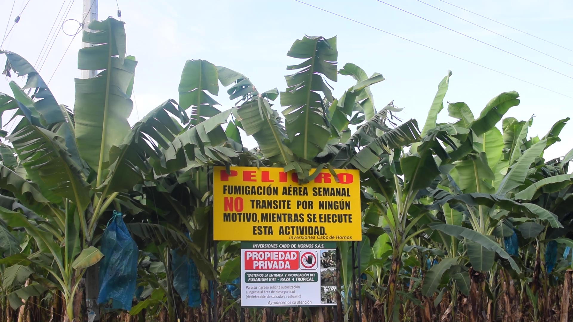 El área de la finca que hoy circunda al barrio está destinada, en buena medida, al cultivo de banano. Por eso, los habitantes de cientos de humildes viviendas que bordean el extenso terreno se ven obligados en las mañanas a cerrar puertas y ventanas; y la gente forzada a guarecerse del veneno que dejan las aeronaves fumigadoras, como ocurrió el 9 de diciembre de 2019 mientras Pacifista y La Liga entrevistaban a los habitantes del Barrio Obrero.