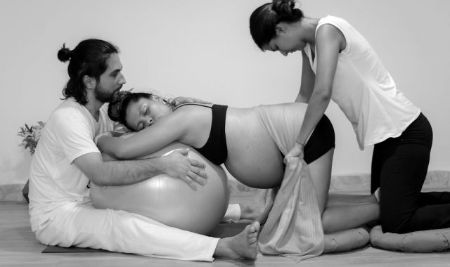 Marcela Lozano Doula en técnicas de relajación y ejercitando la pelvis de una madre, luego de una cita de acompañamiento emocional. Foto de la Página Nacer Ágatha.