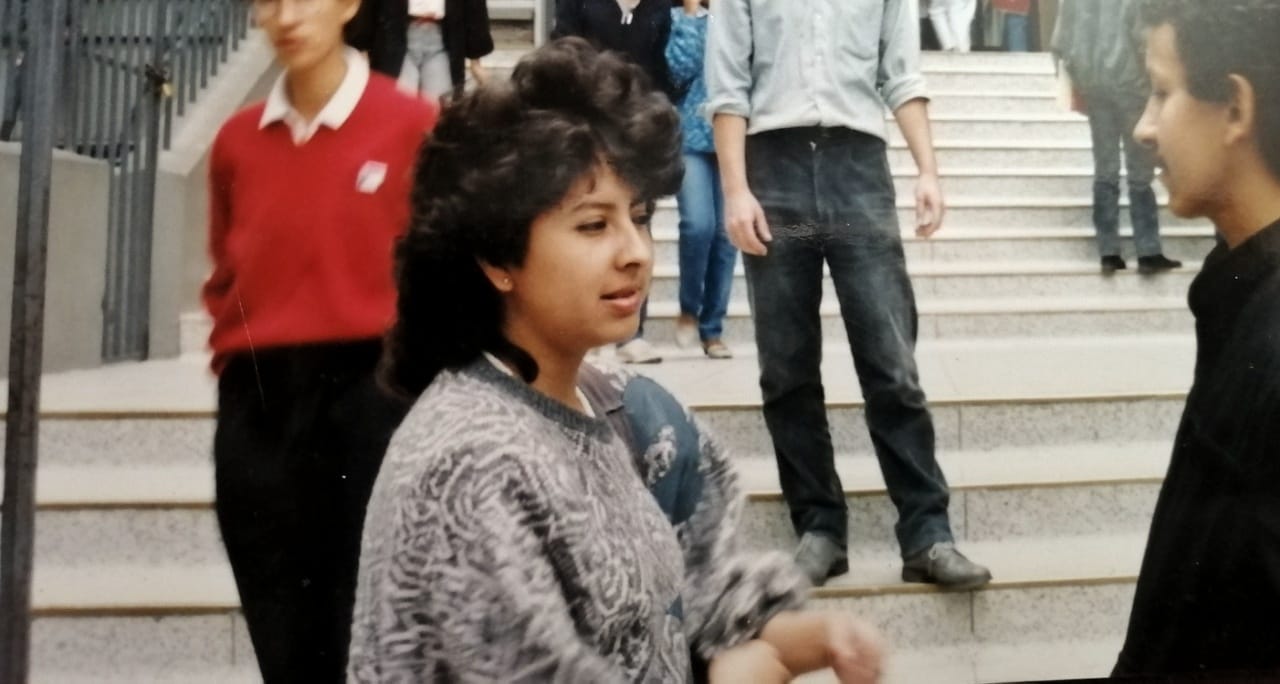 Yadira cursando su última semana de universidad, ya tenía mes y medio; ella no lo sabía (1991). Foto archivo familiar.
