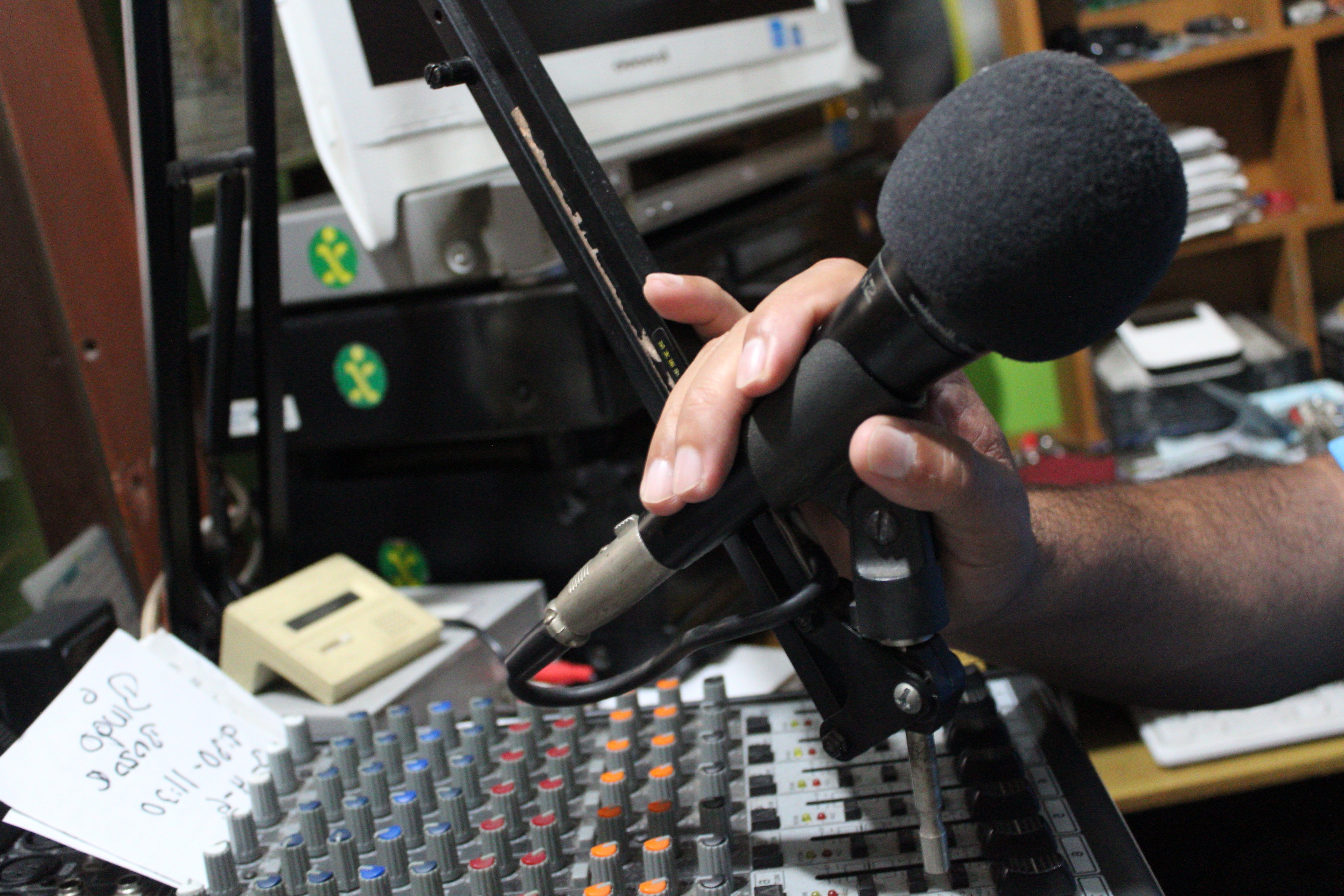 William Rojas transmitiendo en la frecuencia 91.6 FM-La Voz de Cáqueza.