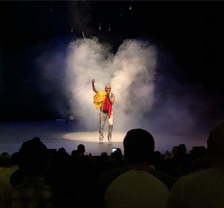 Una sonrisa tímida se desvela en el rostro de Camilo Colmenares cuando reproduce en su computador uno de los videos en los que aparece en YouTube. En el video se ve una de las primeras presentaciones de su obra Yo no me llamo Freddy Mercury, la cual, desde 2013, está en cartelera, y a finales del 2018, hizo parte del XIV Festival de Teatro de Bogotá. Es sugestivo el parecido de Colmenares al difunto Freddy Mercury, vocalista principal de Queen, la única banda del Salón de la Fama del Rock con un Ph. D (Brian May) y un zoroastrista (el propio Mercury). Sus movimientos rígidos pero estilizados con el micrófono, el esqueleto y el pantalón blancos con una franja roja lateral, el compás de las notas y el tono de su voz, el bigote espeso y pelo negro indio, convergen  en la presentación que ahora Camilo Colmenares observa.