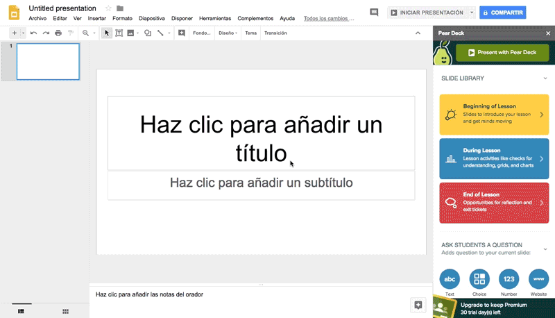 Más información sobre los planes de subscripción: https://www.peardeck.com/pricing