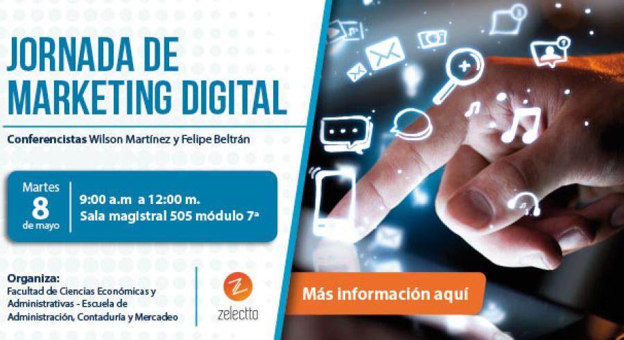 Es por esto que la Escuela de Administración, Contaduría y Mercadeo de la Universidad Jorge Tadeo Lozano, invita a la comunidad académica a participar en la Jornada de Marketing Digital, que se realizará el martes 8 de mayo en la sala magistral 505 módulo 7A, desde las 9:00 a.m. y hasta las 12:00 m.