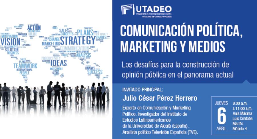 La Facultad de Ciencias Sociales y el Departamento de Ciencia Política y Relaciones Internacionales de la Universidad Jorge Tadeo Lozano, tienen el gusto de invitarlos al seminario: “Comunicación política, marketing y medios: los desafíos para la construcción de opinión pública en el panorama actual”, que se celebrará el jueves 6 de abril de 9:00 a 11:00am. en el Aula Máxima Luis Córdoba de la UJTL.