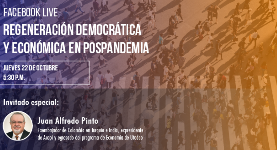 Sobre todos estos temas derivará el conversatorio virtual: “Regeneración democrática y económica en pospandemia”, el próximo 22 de octubre, a las 5:30 p.m., a través de nuestra cuenta oficial en Facebook: @utadeo.edu.co. En ese escenario, Pinto sostendrá un diálogo, desde lo económico, lo político y las relaciones internacionales, con los tadeístas Mario Adolfo Forero, profesor del Área Académica de Derecho, Ciencia Política y Relaciones Internacionales, y Danilo Torres Reina, director del Área Académica de Economía y Comercio Internacional.
