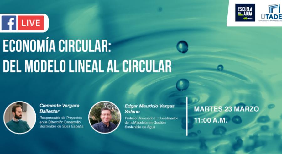 La Maestría en Gestión Sostenible del Agua de Utadeo celebra el Día Mundial del Agua con el Facebook Live: “Economía Circular: del modelo lineal al circular”, con la participación de Clemente Vergara, responsable de proyectos en la Dirección de Desarrollo de Suez España, y Edgar Mauricio Vargas, coordinador de esta maestría. La cita es este 23 de marzo, a las 11:00 a.m.