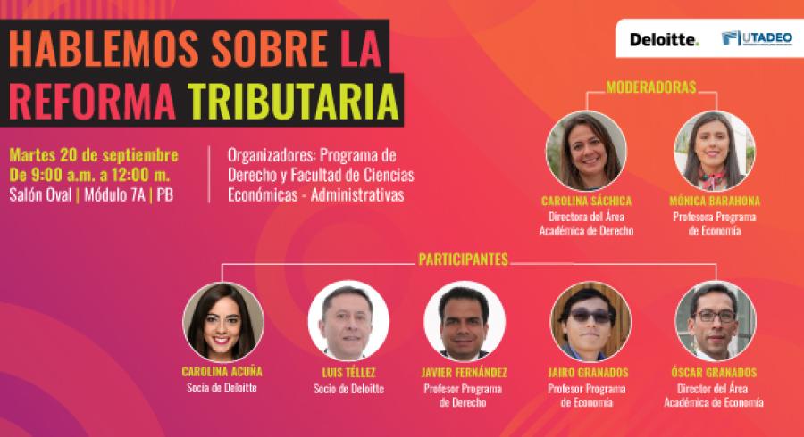 Los programas de Derecho y Economía de la Universidad Jorge Tadeo Lozano, en asocio con la firma Deloitte Asesores y Consultores organizan este evento sobre este tema de actualidad por ser una de las propuestas centrales del nuevo gobierno encabezado por el presidente Gustavo Petro y que ha sido impulsada por el Ministro de Hacienda José Antonio Ocampo. El evento presencial será en la Sala Oval del módulo 7A y se transmitirá por el canal de YouTube.