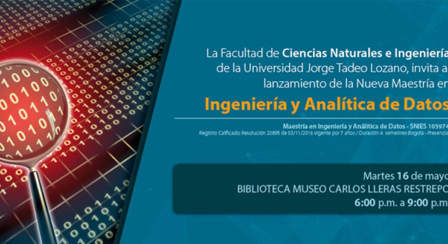 Con motivo del lanzamiento de la Maestría en Ingeniería y Analítica de Datos de la Facultad de Ciencias Naturales e Ingeniería, este martes 16 de mayo, a las 6 p. m. en la Casa Lleras, se llevará a cabo un conversatorio donde líderes de la industria, el gobierno y la academia analizarán los aspectos más relevantes de este nuevo campo.