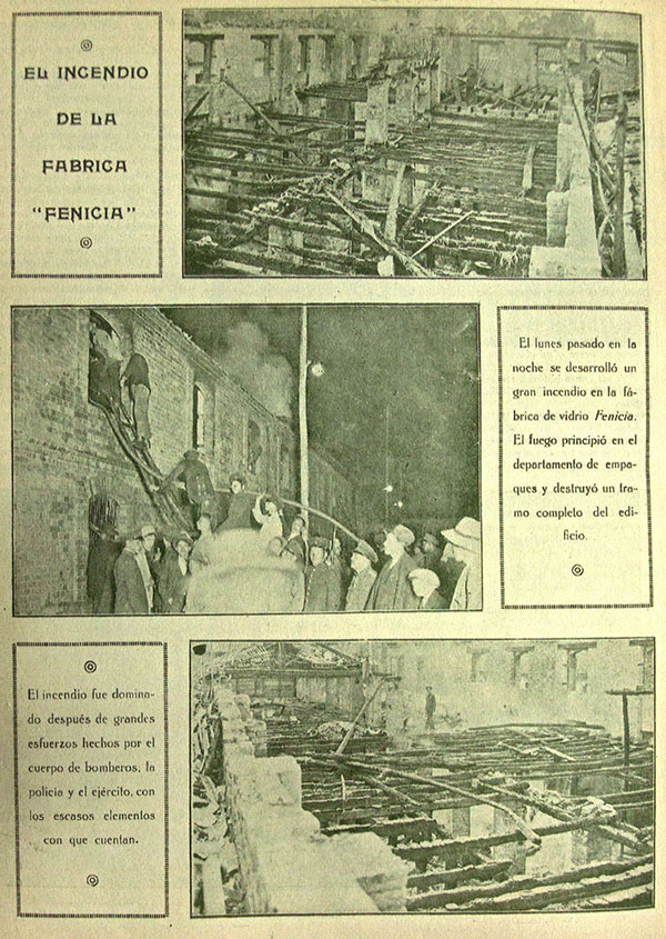 Incendio de la Fábrica Fenicia. Revista Cromos (1926). Archivo: Biblioteca Fundación Gilberto Alzate Avendaño