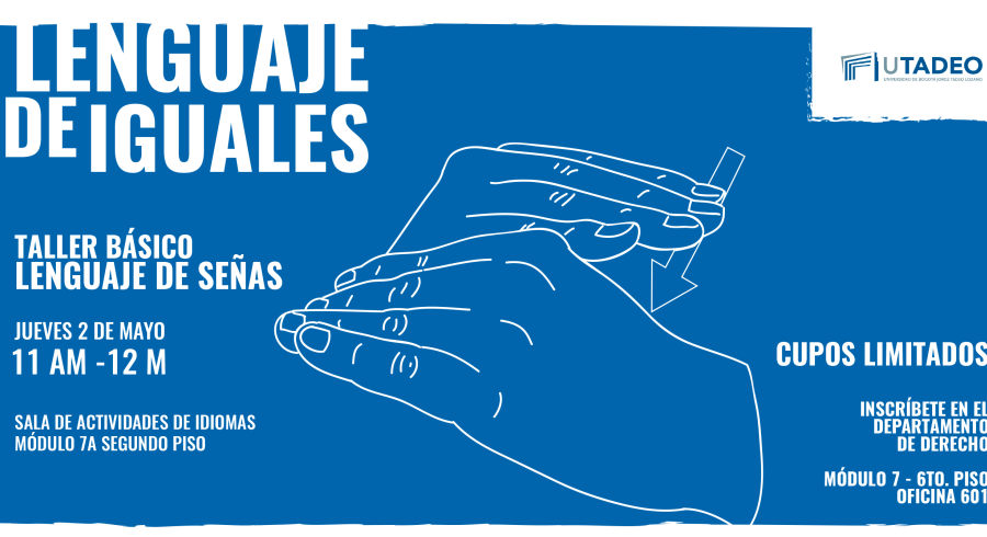 La asignatura Pedagogía Constitucional, ha desarrollado un Taller básico de lenguaje de señas, el cual será realizado el día Jueves 2 de Mayo de 11:00 AM a 12:00 PM en la Sala de Actividades de Idiomas en el segundo piso del Modulo 7A. Este taller tiene como objetivo integrar a la comunidad Tadeista celebrando el derecho a la igualdad dentro de la universidad.