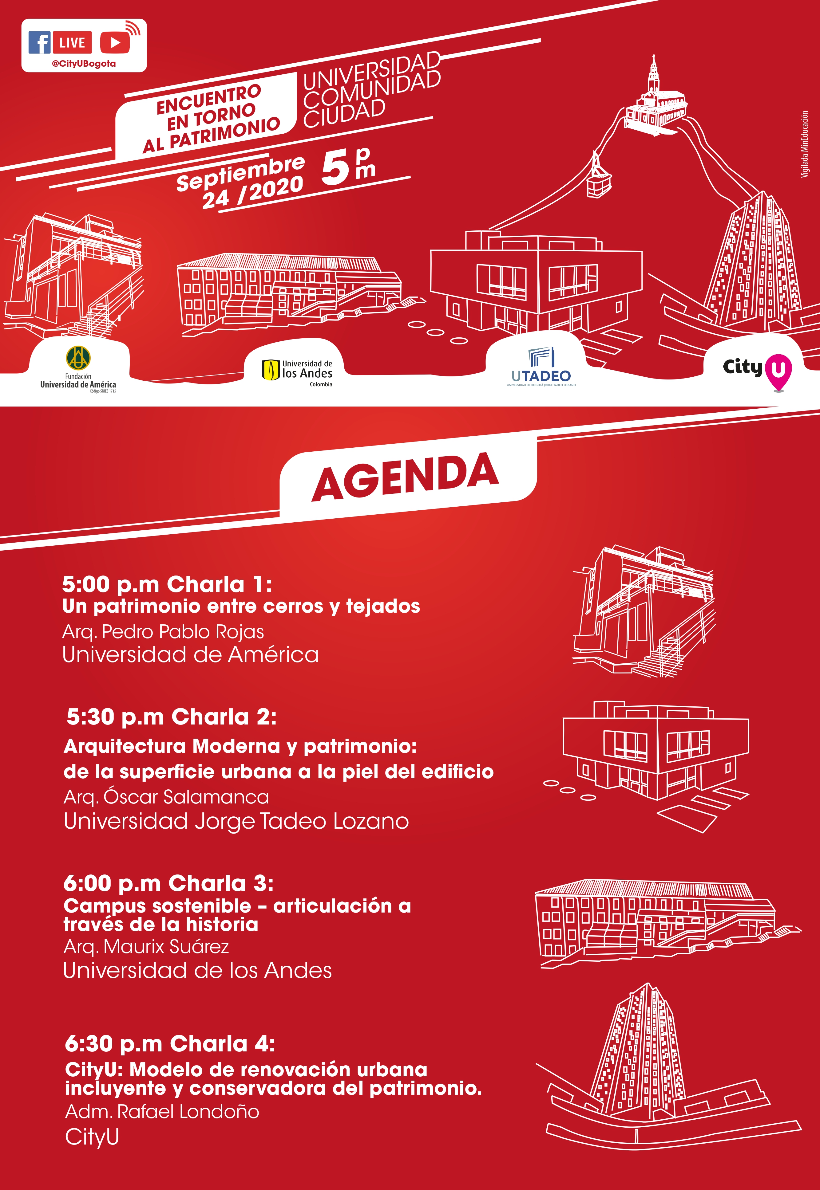 "Encuentro en torno al patrimonio: universidad, comunidad, ciudad" es una iniciativa en la que convergen la Fundación Universidad de América, la Universidad de Los Andes, la Universidad Jorge Tadeo Lozano y CityU, colectivo colaborativo que desarrollará iniciativas concernientes al patrimonio y que espera seguir fortaleciéndose e invitando a nuevos actores a participar en él.