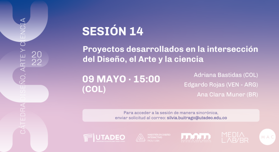 Parte del objetivo principal de la Cátedra es saber reflexionar alrededor de las relaciones potentes entre Diseño, Arte y Ciencia para el abordaje de problemas contemporáneos; en esta sesión se abre un espacio a proyectos desarrollados a nivel nacional e internacional que le apuesten a la intersección del Diseño, el Arte y la Ciencia.