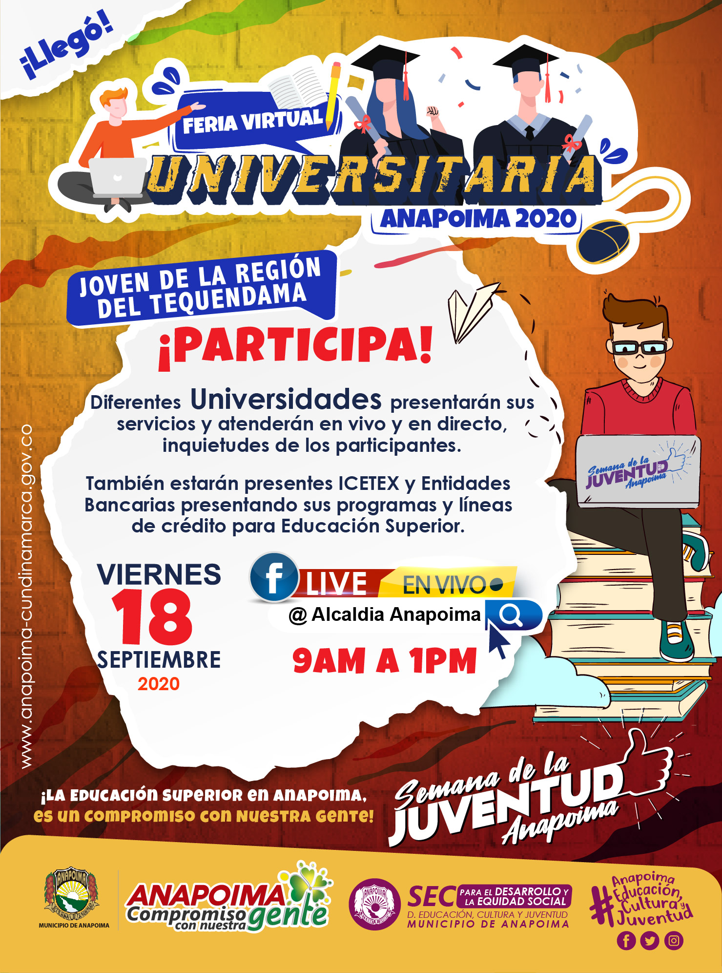 Como una manera de llevar el mensaje y las oportunidades de educación que brinda nuestra Universidad, Utadeo participará en las Feria Virtual Educativa de Anapoima, Cundinamarca, el próximo 18 de septiembre, entre las 9:00 a.m. y 1:00 p.m., a través del Facebook de la Alcaldía del municipio.
