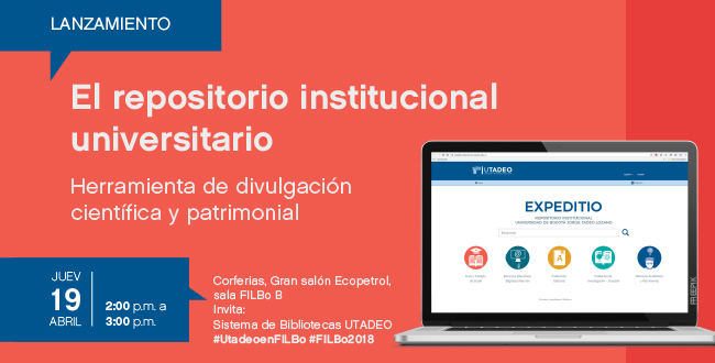Asiste al evento de lanzamiento El repositorio institucional universitario: herramienta de divulgación científica y patrimonial el jueves 19 de abril a las 2:00 p. m. en el Gran Salón Ecopetrol, Sala – FILBo B