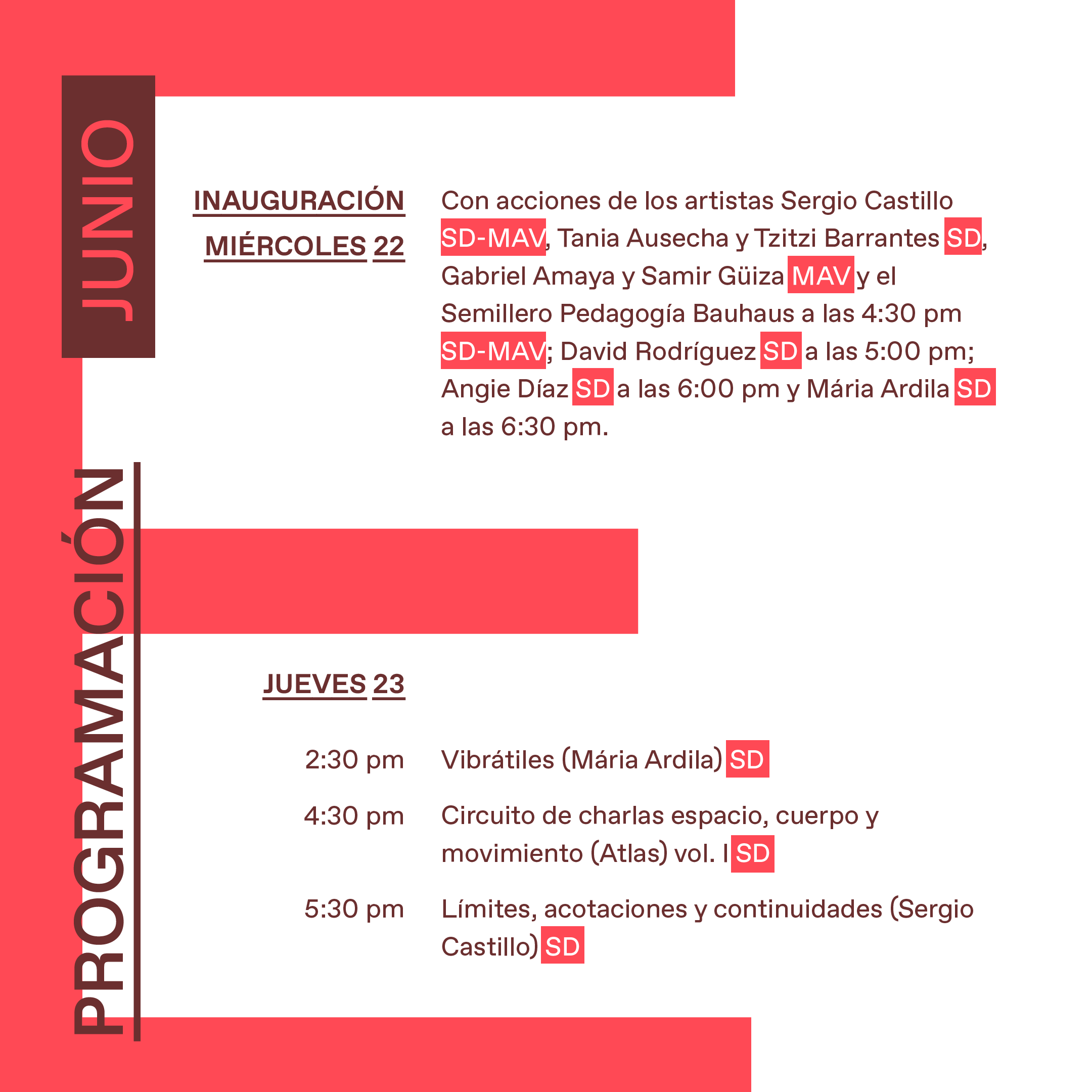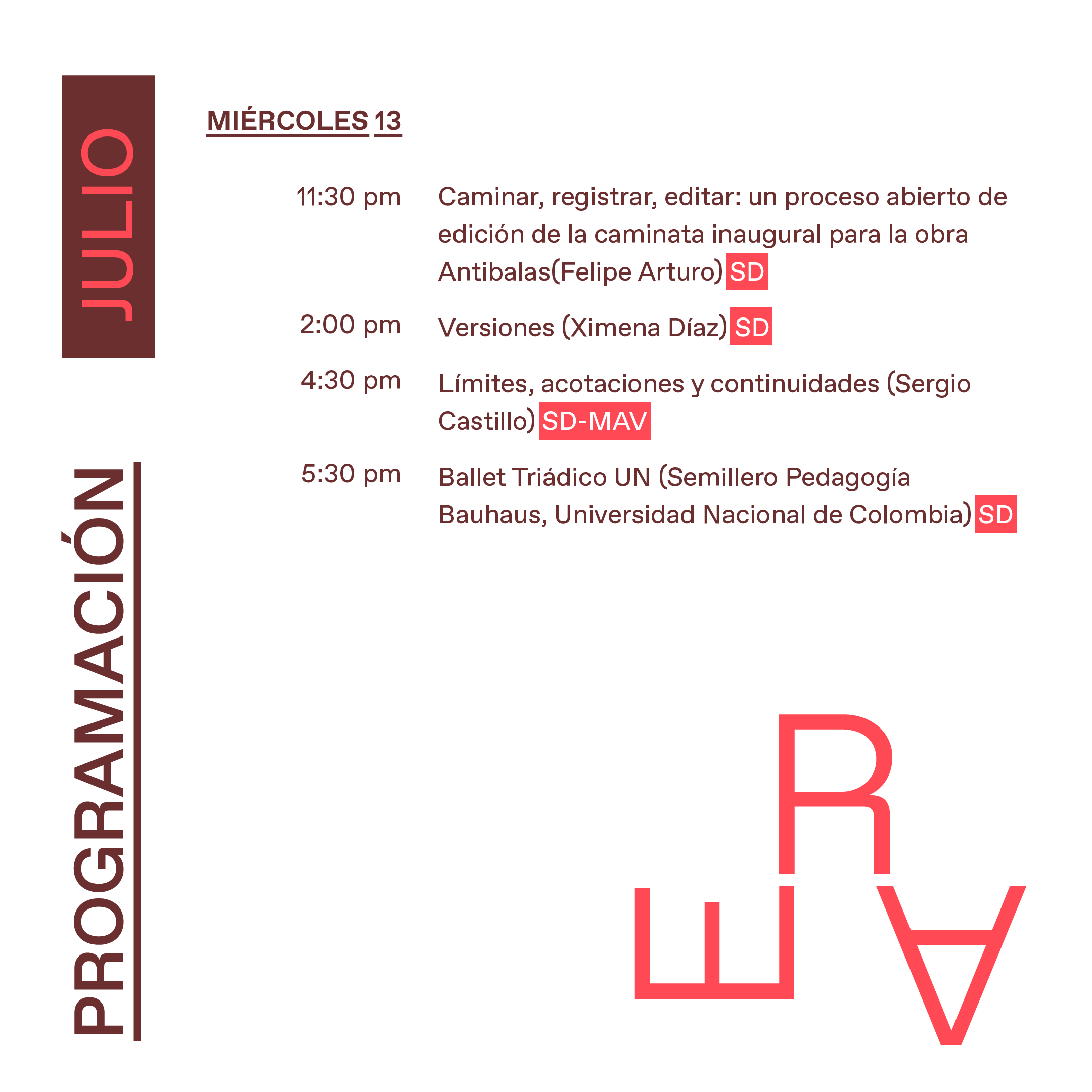 La exposición ERA se despliega en dos espacios: la sala Santo Domingo de la Universidad de los Andes y el Museo de Artes Visuales de la Universidad Jorge Tadeo Lozano, ambos lugares ubicados sobre el eje de la calle 22 y estará abierta al público del 22 de junio al 13 de julio de 2022.