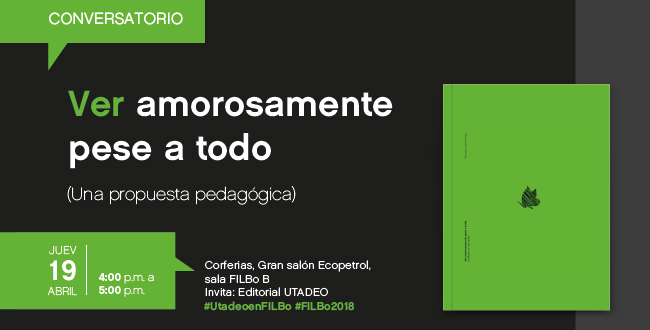 Asiste al conversatorio Ver amorosamente, pese a todo (una propuesta pedagógica) el próximo jueves 19 de Abril a las 4:00 p. m. en el Gran Salón Ecopetrol (sala B) de Corferias. El autor presentará el libro en compañía de Javier Gil, director del programa de Artes Plásticas de Utadeo.
