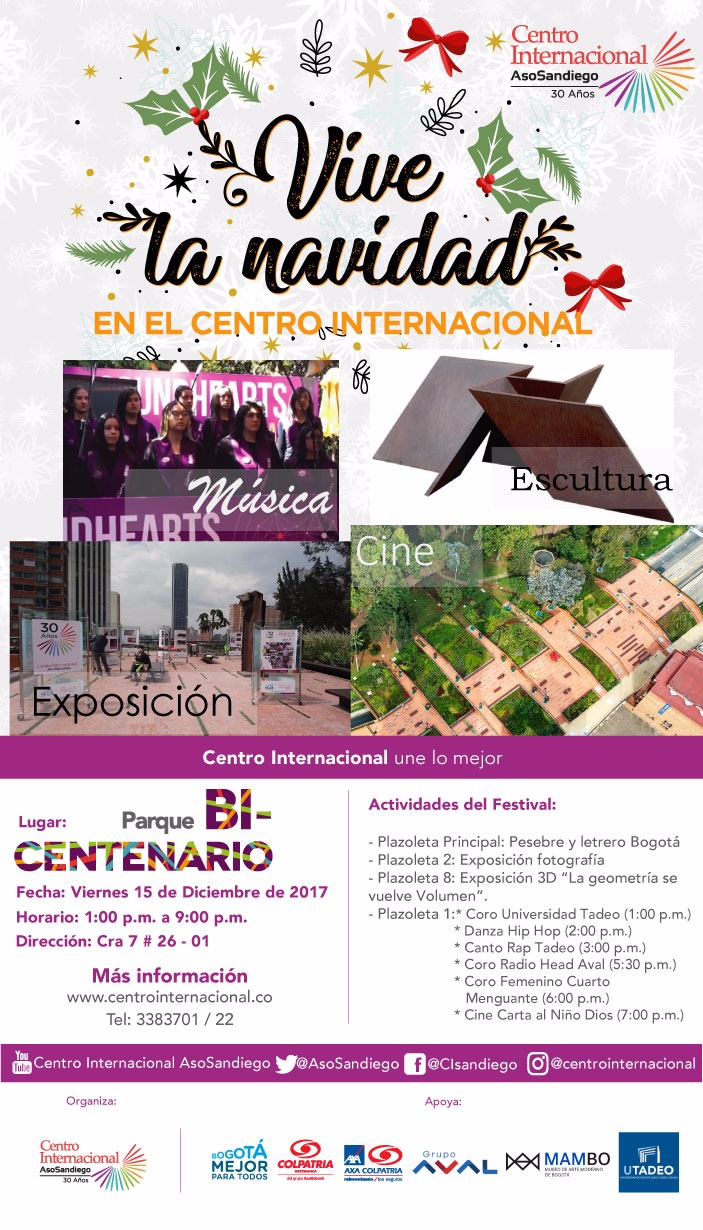 Asiste al Festival de Navidad organizado por Asosandiego este viernes 15 de diciembre en el Parque Bicentenario, en el cual participará Utadeo como uno de los actores culturales de esta zona de la ciudad.