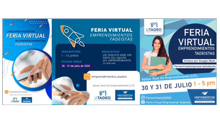 Junio 01 / 2020UNITADEÍSTAS y la Ruta de Emprendimiento UJTL, te invitamos a participar en la Feria Virtual de Emprendimientos Tadeístas 2020.