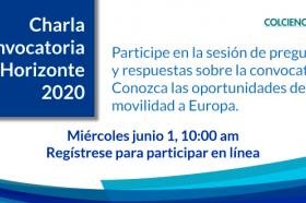 RecomendadosMayo 26 / 2016Inscríbase gratis y participe en la charla virtual sobre la Convocatoria Horizonte 2020, que se llevará a cabo el 1 de junio, a las 10:00 a.m.
