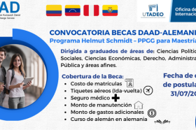 BecasJunio 08 / 2023Con el programa Helmut-Schmidt, el DAAD contribuye al avance de la buena gobernanza y de las estructuras de la sociedad civil en los países en vías de desarrollo y emergentes.