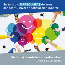Para la Oficina de Egresados es importante conocer tu nivel de satisfacción laboral para realizar una gestión pertinente de acuerdo a las necesidades percibidas por medio de esta encuesta.